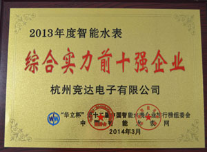 Recently, the 12th "China Smart Water Meter Ranking" was grandly announced! Hangzhou Jingda Electronics Co., Ltd. won the title of "Leading Enterprise in Smart Water Meter Technology in 2013" and "Top Ten Enterprises in Smart Water Meter Comprehensive Strength in 2013"! This is the 9th consecutive year since 2005 that Jingda has won the title of Top Ten Enterprises in Comprehensive Strength, demonstrating Jingda's outstanding position and strong strength in the smart water meter industry!